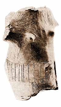 The new stylistic synthesis resulted in preserved realistic forms, basically an anthropomorphic statuettes, but once three dimensional surfaces became flat, plastically modelled details were gradually schematised and turned into hardly understandable ornamental signs.