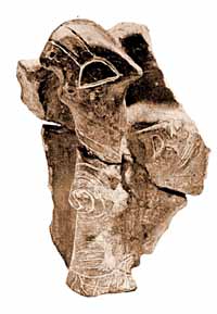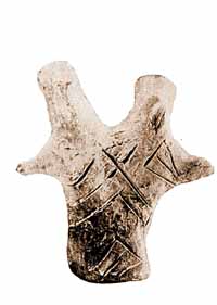 Hence carved or painted details on the Vinca statuettes signify neither apparel nor tattooed signs, but emerged as a result of the development of stile which ranged from three dimensional realistic forms towards linear, abstract ones. Formation of that style has to be linked with the technique of cutting and adorning metal sheet and bones.