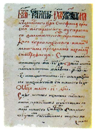 Dushan's Code, established in 1349 and 1354;this is a page from a copy made in the fourteenth century