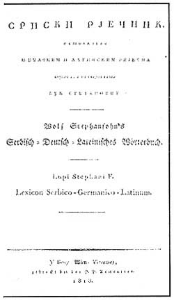 The cover page of the Serbian Dictionary by Vuk Stefanovic
