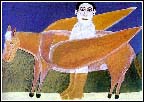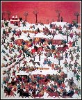 First of all, three painters of extraordinary talent and imagination, who appeared in 1960s, marked and characterized Serbian Naive art. They are Milan Rasic, Milosav Jovanovic and Dusan Jevtovic. They were all of country origins and their common trait was their search for a lost childhood, folk history and paradise lost. They belong among the most significant authors, with an authentic and specific artistic language. With an abundance of details, a meticulous and plain treatment of vertical and horizontal surfaces, they have created paintings which are dramatic and expressive (Jevtovic), impressive, stratified and mythical (Jovanovic), as well as lyrically inspired and sensitive (Rasic). Milan Rasic has presented the life of peasants and collective events in the village in a vertical format. By means of colour and traditional iconography, Rasic has given representations which are full of serenity, of idyllic and paradisiacal decor. His paintings are architectonically and thematically located in the milieu of his native region. Those paintings are full of an emphasised idealization, imagination and vision, the decorative stylisation of flora and the comprehension of tradition and customs. Milosav Jovanovic is one of the rare painters who finds his motifs in folk mythology. The basic elements of his visual art are imagination and dreams. His artistic language is condensed, metaphorical and reduced to gnomons and symbol. He does not narrate, does not retell, but he rather consults, reveals and inspires. Dusan Jevtovic is considered to be the "most consistent Expressionist painter in our Naive art" by many critics. In his paintings, life is a celebration. Horses - white, blue and red - dynamically and rhythmically trot and fly in his pictures, symbolising strength, spite and heroism. He kept changing the colouring and plans of his paintings. They ranged from green to blue tonality, passing later to the burning tones of blood and new wine. He has sliced surfaces with semicircular plans - the reliefs of his homeland, for example - and he has moved the horizon high into the upper part of the painting.