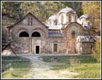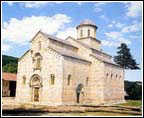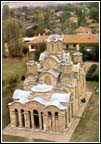 In a series of structures built in the early decades of the fourteenth century, attention should also be given to the monuments which are small in dimension, raised at existing monasteries or as the endowment of lords with humble financial resources. The greatest attention should be paid to the King's church at Studenica (1313-1314), also the work of King Milutin. It is almost square, covered entirely by a single cupola which is supported by a compact sub-structure, with regal relationships in its measurements. The interior is the representation of the ideal church, a picture of the cosmos as conceived by early Byzantine architecture. This church is the outcome of the return to the old models. It can be concluded that it is one of those renovations in Byzantine art which are considered to be a sort of classicism. At the end of the 1320s, the Patriarchate at Pec obtained its final form. That great unity of the space developed was formed so that the church of the Holy Apostles (of Raska design) was appended on its north side by the church of St. Dimitrios in the second decade of the fourteenth century - a single nave structure with a cupola. Along the south side, the church of the Holy Virgin was added, in the form of a developed cruciform church with a cupola, and along the west side of the three structures a large exonarthex was built on. The whole is brought to a finish by the church of the Holy Virgin on the south side, with its large narthex, chapel and vestibule built under the care of Archbishop Danilo II (1328/1330). From the outside, the Patriarchate is a panorama of forms characteristic of the Serbian architecture of the times. On the facades of much of the structure, painted decoration replaced relief work in stone, along with decoration in brick and stone.