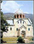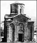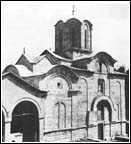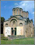 In the historiography of Serbian art, the architectural works built from the end of the thirteenth to the end of the fourteenth centuries were given the name "the Serbian-Byzantine school". The beginning of that period was marked by the first great work of King Milutin, the renovation of the monastery of Hilandar (1293). In the series of structures built at Hilandar at that time, the main church is outstanding in its size, and also because of its complex structure and because it has the highest degree of craftsmanship and artistry. The building is a continuation of the mid-Byzantine type of structure, with the cupola in the centre. At Hilandar that type is realized in a well-developed conceptualization of space and structure, in the forms and means of construction that were characteristic of the Byzantine capital. The artistic whole of the church at Hilandar includes the mosaic floor and the stone relief decorations on the portals and windows. The origins of the decoration are found in two sources: the bas-relief sculptures on the flat surfaces are congruent with the Byzantine art of the time, and the stone consoles in the form of animal heads were done by craftsmen from one of the stonemason workshops in Serbia. The name of King Milutin (1282-1321) is associated with the complete turn of the country toward the Byzantine spiritual world and Byzantine civilization. This can be clearly seen in the architecture. All of its important traits originated in Byzantine architecture. In place of the single nave churches which were built up to that time, adapted to the special plan of the Raska school, the cruciform church with a cupola, widespread in the Byzantine world, was introduced. In Serbia, after the construction of Hilandar, a whole series of churches was built in two basic styles: one style had a conception closer to the simple cruciform church with a cupola, such as that of St. Nicetas on Crna Gora near Skopje; the other was the developed variant with its origins in Constantinople and Salonica. In Prizren a new municipal cathedral church was built, the church of the Holy Virgin of Ljevisa (1306-1307), a structure with five cupolas. It was not destroyed in the urban milieu because it was converted to a mosque. A new church was built on the partial remains of the older basilica. Its design is similar to that which is known in the history of Byzantine art from the church of the Apostles in Salonica: the core is made up of a cruciform church with five cupolas, and around it is a large nave on the north, west and south sides. In the masonry, material and forms of this endowment of King Milutin, a representation of the Byzantine style of construction in those times is represented in the best way. The august west facade is especially outstanding, consisting of the arcades of the ground floor, the symmetrical and rhythmically placed decorative niches above the vestibule and the high bell tower boldly constructed at the axis of the composition. The architect Nikola - only his first name is known - built a church which had no equal in Byzantine architecture at the beginning of the fourteenth century. The church of St. George in Staro Nagoricino (1312) was built similar to the cathedral at Prizren. As in Prizren, the walls of the older building were kept out of the customary respect for a cultic place. In Staro Nagoricino, the ideal plan of a five-cupola church exists in a somewhat more highly adapted form, because the old walls were retained, and the large nave was exchanged for arcades along three sides of the building.
