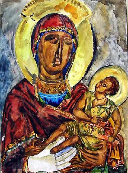 Богородица са дететом, акварел, 1922.